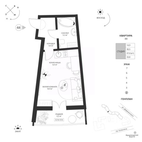 Теодор Кроне — современный жилой квартал класса комфорт+ в Центральном районе Калининграда с собственным спа-комплексом и комьюнити-центром. Здесь продумано все для тех, кто ценит качество, эстетику и полноценную жизнь рядом со всем необходимым. 99% повседневных услуг уже на территории жилого комплекса. Жить в "Теодор Кроне" — значит тратить меньше времени на быт и больше на себя. 3 очереди строительства: 1 очередь - сдана, 2 очередь 1 этап - ввод апрель 2026 года, 2 очередь 2 этап и 3 очередь - ввод 2030 год. Уникальные особенности проекта: СПА-центр и фитнес-зал в доме Современный коворкинг Детский клуб и бьюти-салон Кинозалы и амфитеатр для культурных мероприятий Сервисы для жизни: прачечная, химчистка, аптека, поликлиника, супермаркет, пункты выдачи заказов, кафе-пекарня у дома Собственная управляющая компания с дополнительными сервисами: прокат, домашний мастер, клининг Квартиры выполнены в предчистовой отделке White Box Дизайнерские входные группы и лобби В домах 3 и 4 - ремонт в подарок! Транспортная доступность: Удобный выезд на основные транспортные развязки — вы быстро доберетесь в любую точку города. До побережья Балтийского моря можно доехать за 20 минут. В пешей доступности школы, детские сады, городской парк "Теодор Кроне", собственная набережная, озеро, прогулочные и велосипедные маршруты, историческая кирха Юдиттен. Для покупателей квартир действуют все ипотечные программы (IT, семейная, военная, стандартная) и материнский капитал в качестве первого взноса. Допускается рассрочка с первоначальным взносом, а также 100% оплата за собственные средства. Помощь с оформлением сделки от ипотечного брокера и юристов застройщика. Больше подробностей вы можете узнать по телефону отдела продаж,проведем консультацию в удобное для вас время. Звоните! Не является публичной офертой, предложение ограничено, оценивайте свои финансовые возможности и риски. Застройщик: ООО Специализированный Застройщик Эко-Город. Проектная декларация размещена на сайте наш.дом.рф. Сроки, условия проведения акций и актуальные цены на сайте девелопера. Когда вы выбираете недвижимость от К8 — вы выбираете комфортную, продуманную и растущую в цене среду для жизни или инвестиций. Что вы получаете: 1. Недвижимость, которая дорожает: каждый проект создаётся так, чтобы его ценность росла. Вы покупаете актив, который работает на вас. 2. Продуманные концепции: вы живете в пространстве с идеей, смыслом и логикой - где каждая деталь служит вашему удобству. 3. Настоящий комфорт: планировки, которые экономят место и время. Дома, где технические решения подчинены вашему образу жизни. 4. Эстетику, которая радует каждый день: архитектура, на которую приятно смотреть, и окружение, которое радует. 5. Качество, которое чувствуется: материалы, инженерия, благоустройство - вы видите и ощущаете результаты внимательного подхода. 6. Заботу на всех этапах: вам помогают подобрать недвижимость именно под ваши цели: для жизни, отдыха или инвестиций - в Светлогорске, Зеленоградске и Кал Купить квартиру-студию с лоджией в Калининграде.