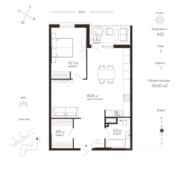 СПЕЦ.ЦЕНА на данный лот! ПОДХОДИТ ПОД ИПОТЕКУ 5,4% ДО ВВОДА! Или при 100% оплате (в т.ч. при ипотеке без субсидирования) или рассрочке до 6 месяцев при первоначальном взносе от 50%. Срок проведения акции 08.04.26-07.05.26 ПРИНЦЕСС РОЯЛ (PRINCESSE ROYAL) Эксклюзивные апартаменты на первой линии в Зеленоградске Элитный мультифункциональный отель "PRINCESSE ROYAL" расположился в курортном Зеленоградске, прямо на променаде Балтийского моря. В продаже апартаменты на 5-7 этажах. Апартаменты будут реализованы только с дизайнерским ремонтом и в полной комплектации. После ввода объекта, недвижимость можно будет отдать под управление профессиональной управляющей компании и извлекать пассивный доход. Из каждого апартамента открывается завораживающий вид на Балтийское море. Панорамное остекление позволяет наслаждаться морскими пейзажами и закатами, не выходя из дома, а продуманная планировка делает пространство максимально функциональным. Срок сдачи - 3 квартал 2027 года. На территории комплекса расположатся: отель, оздоровительный SPA-комплекс с открытыми и закрытыми бассейнами, комплекс бань, семейный ресторан на первом этаже, ресторан высокой кухни на эксплуатируемой кровле, магазины,конференц-зал, спортзал, источники с лечебно-столовой минеральной водой, поступающей из скважин Королевы Луизы. В зоне ресепшн для вашего комфортного пребывания будет работать сервис 24/7, предоставляющий полный спектр услуг. Подземный паркинг будет сдаваться в аренду. "PRINCESSE ROYAL" окружает безупречная инфраструктура! Сделайте шаг из дома — и вы на променаде, сразу же спуск к морю. Всего 3 минуты неспешной прогулки — и вы в сердце Зеленоградска. На автомобиле: 5 мин до Куршской косы, 20 мин до аэропорта Храброво, 30 мин до центра Светлогорска, 35 мин до центра Калининграда. Покупка происходит посредством заключения договора долевого участия. Действует классическая программа ипотеки, рассрочка от застройщика или 100% оплата за собственные средства. Помощь с оформлением сделки от ипотечного брокера и юристов застройщика. Больше подробностей вы можете узнать по телефону отдела продаж. Звоните! Не является публичной офертой, предложение ограничено, оценивайте свои финансовые возможности и риски. Застройщик: ООО СЗ Компас. Проектная декларация размещена на сайте наш.дом.рф. Сроки, условия проведения акций и актуальные цены на сайте девелопера. Когда вы выбираете недвижимость от К8 — вы выбираете комфортную, продуманную и растущую в цене среду для жизни или инвестиций. Что вы получаете: 1. Недвижимость, которая дорожает: каждый проект создаётся так, чтобы его ценность росла. Вы покупаете актив, который работает на вас. 2. Продуманные концепции: вы живете в пространстве с идеей, смыслом и логикой - где каждая деталь служит вашему удобству. 3. Настоящий комфорт: планировки, которые экономят место и время. Дома, где технические решения подчинены вашему образу жизни. 4. Эстетику, которая радует каждый день: архитектура, на которую приятно смотреть, и окружение, котор