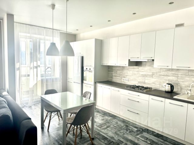 большая кухня гостиная 19,4 м.кв. с панорамным остеклением и выходом на комфортную лоджию. Это место где встречают гостей, с дополнительным спальным местом.,