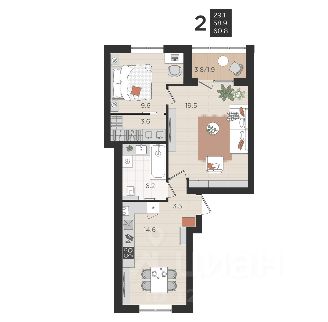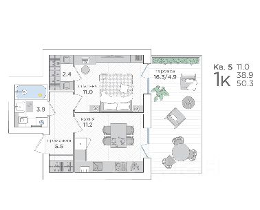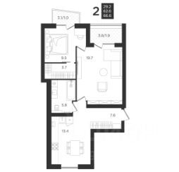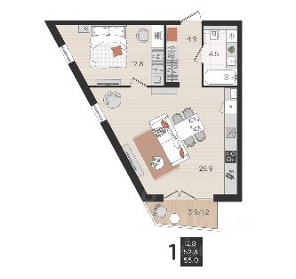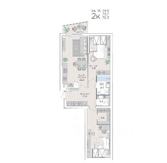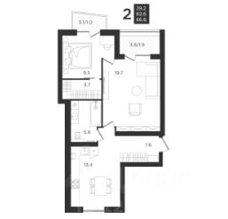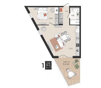 • Лоджия (вход с кухни) 3,1 м²;