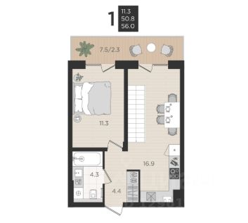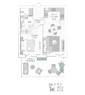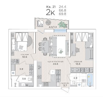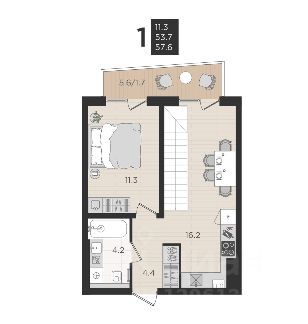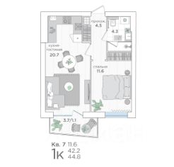 • Санузел совмещённый 4,2 м²;