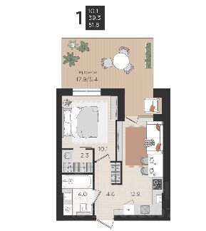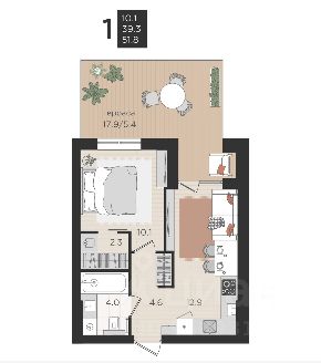 • Жилая комната 10,0 м²;