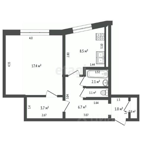 Квартира чистая, светлая и полностью готова к проживанию — заезжай и живи.