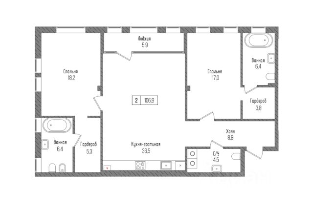 Последняя квартира в доме Премиум класса. Кладовая в подарок! О квартире: - Общая площадь 112.8 м2, общ. площадь с холодными помещениями с коэф. 0.3-0.5 109.8 м2, общ. площадь без холодных помещений 106.9 м2, жилая площадь 35.2 м2, кухня-гостиная 36.5 м2. - Просторная кухня-гостиная, две спальни. В каждой жилой комнате санузлы 6.4 м2, 6.4 м2 и дополнительные помещения свободного назначения (гардеробная/хоз.блок), также имеется гостевой санузел. - В кухне-гостиной панорамные окна, выход на большую лоджию 5.9 м2 с панорамным остеклением. - Квартира просторная светлая уютная. - Окна на разные стороны света. - Отопление автономное (двухконтурный котел Bosh). - Качественный серый ключ: дорогая входная дверь, окна шестикамерный профиль + тройной стеклопакет, теплые полы во всех санузлах (с дополнительным насосом давления воды), видеодомофон, вся разводка электрики и коммуникаций, канализация бесшумная. - Видеообзор квартиры по запросу. О доме: - Год постройки 2024. - Дом Премиум класса. Расположен в роскошном историческом районе Амалиенау по соседству с изумительными виллами начала XX века от ведущих архитекторов Восточной Пруссии, зелеными парковыми и прогулочными зонами. Дом: монолитный каркас с заполнением красным керамическим кирпичом; фасад - клинкер ручной формовки производства Vandersanden (Бельгия); кровля - натуральный камень - сланец; цоколь - натуральный гранит; водосточная система - сплав титана с цинком (вся водосточная система имеет автоматическую систему подогрева в зимний период - от нарастания сосулек); установлены насосы подачи воды; система видеонаблюдения. - В доме 8 больших сухих подвальных помещений (приобретаются отдельно). - Подъезд: дизайнерский ремонт, испанская плитка, декоративные элементы, диодная подсветка, большой лифт, входная дверь индивидуального изготовления выполнена из натуральных материалов. - Придомовая территория огорожена с наличием детской площадки и 8 парковочных мест (планируется навес), за каждой квартирой будет закреплено отдельное парковочное место. - Рядом вся инфраструктура: остановки общественного транспорта, магазины у дома, супермаркеты Виктория, SPAR, детский сад 74, школа 21, детская поликлиника, детская библиотека имени А.П. Гайдара, городская больница, Музыкальный театр, кафе, рестораны, аптеки, банки, Центральный парк культуры и отдыха, пруд Поплавок, скверы, достопримечательности города: Кирха королевы Луизы, Кирха св. Адальберта и другие. О сделке: - Продажа от юридического лица (застройщик). - Без обременений. Почему мы? - Перед выставлением на продажу каждый объект недвижимости проходит юридическую экспертизу. - Широкая специализация на рынке недвижимости. - Высококвалифицированные специалисты, которые помогут вам во всех процессах сделки. - Удобный комфортный офис в Центральном районе города с собственной парковкой. Уникальное предложение, звоните! Номер объекта: #1/537587/13735