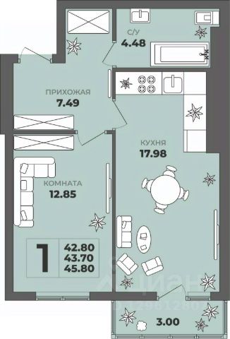 Продаётся 1-комнатная квартира в строящемся доме (Дом 2), срок сдачи: II-кв. 2027, общей площадью 43.7 кв.м., на 4 этаже. ЖК "ГРИНВУД". - Жилой комплекс из двух 8-ми этажных дoмoв - Комфортные и продуманные планировки - Kласc энepгоэффeктивнocти B (выcoкий) - Качественные серый ключ - Автономное газовое отопление. - Лоджии и балконы остеклены (алюминиевые ограждающие конструкции) - Бесшумные грузопассажирские лифты - Качественные и безопасные входные двери - Современное благоустройство двора с детскими и спортивными площадками, местами отдыха взрослых и детей - Ипотека в ВТБ, Банк Санкт-Петербург, Альфа-Банк, Банк Дом РФ ЖК "Гринвуд" находится в экологически чистой части бывшего Балтийского района. Сейчас к этой территории повышенный интерес: здесь нет крупных производств, много зелёных уголков, развитая социальная инфраструктура. Улучшается и транспортная доступность района. В шаговой доступности от ЖК расположена обширная зелёная зоной у озера Пеньковое. Тихое уютное место подарит отдых от городской суеты. При этом рядом находится вся необходимая инфраструктура: детские сады, школы, супермаркеты, рынок, фитнес-центры, салоны красоты, библиотека, торговые центры и остановки общественного транспорта. ЖК "Гринвуд" выполнен в современном архитектурном стиле. На комфортной прилегающей территории предусмотрены места для отдыха взрослых, детские и спортивные площадки, вместительная парковка. В доме также располагаются нежилые помещения различного назначения, так что можно рассчитывать на салоны красоты, аптеки, медицинские центры и магазинчики прямо в ЖК. РЯДОМ: - Озеро "Пеньковое"- Остановка общественного транспорта в 5 минуте ходьбы - Южный рынок - Детский сад 136 - Детская поликлиника 4 - Школа 6 и 56 (2 корпус) - Спортивная школа - Супермаркеты: "Пятерочка", "Вестер" и пр. - Аптеки и медицинские учреждения - АЗС Лукойл