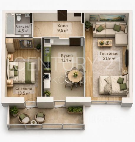 Планировка — один из самых сильных аргументов этого предложения. Комнаты не смежные, они разделены кухней, а значит квартира будет комфортна и для семьи с ребёнком, и для пары, и для тех, кто хочет организовать отдельную спальню и кабинет. Просторная прихожая создаёт ощущение объёма уже с порога, большой санузел добавляет удобства в повседневной жизни, а две большие смежные панорамные видовые лоджии становятся настоящей изюминкой квартиры Это редкое преимущество, которое даёт много света, красивую глубину пространства и возможность создать дополнительную зону отдыха, кабинет, зимний сад или объединить лоджии в одно эффектное пространство. Мебель и техника остаются частично!