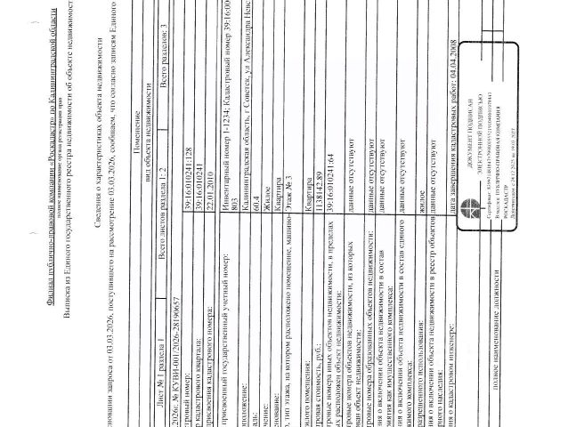 Код объекта: 1661150. Уникальное предложение для тех, кто ищет комфортное жильё в Советске! Продаётся двухкомнатная квартира общей площадью 42,9 кв. м на улице Гончарова, 6. Квартира расположена на втором этаже четырёхэтажного кирпичного дома 1969 года постройки. Высота потолков — 2,55 м, комнаты изолированные, окна выходят на улицу и во двор. Квартира имеет удобную планировку: жилая площадь составляет 23,9 кв. м, площадь кухни — 6 кв. м. Есть балкон, один совмещённый санузел. Установлено центральное отопление, проведён качественный ремонт с заменой всех коммуникаций, что позволит новым владельцам сразу заселиться и наслаждаться уютом своего дома. Расположение квартиры идеально для тех, кто ценит спокойствие и уют, при этом не желает отказываться от удобства городской жизни. Рядом с домом есть наземная парковка, где можно оставить автомобиль. Мы гарантируем безопасную сделку и юридическую поддержку нашим клиентам. Поможем одобрить ипотеку с сниженной ставкой. Не упустите шанс стать обладателем этой уютной квартиры — позвоните нам прямо сейчас! Продается квартира до 4 млн рублей в Советске (вторичка).