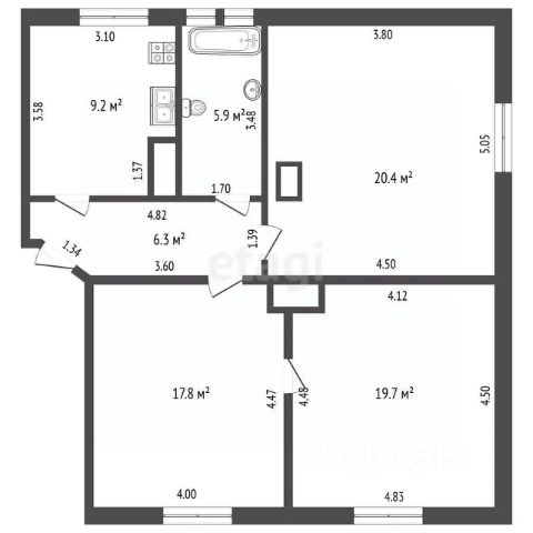 • Смежные комнаты — 12,6 м² и 13,2 м²