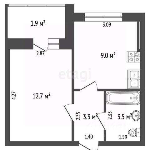 - Санузел совмещенный 4,3 м.кв.
