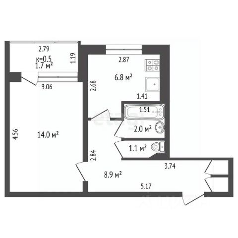 Лоджия: 2,2 м²