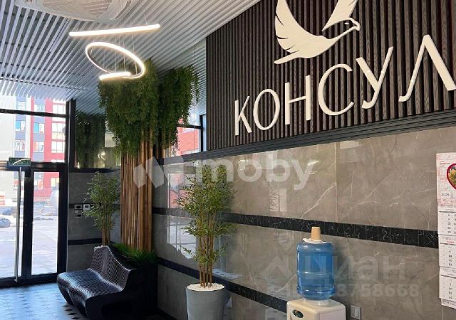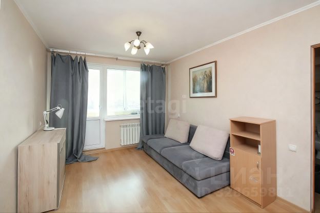 В большой комнате выполнено зонирование ажурной перегородкой из ольхи — спальная зона с полноразмерной кроватью и гостиная зона с диваном, телевизор TCL (4K). Вторая комната — просторная детская в спокойных синих тонах (легко перекрасить в любой цвет) с нишей гардеробом и выходом на застекленную лоджию с окнами в пол с видом на улицу Юбилейная. Просторный коридор.