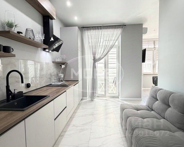 Площадь квартиры 35,2 квадратных метров, высокий 1-й этаж, высота потолков 3 метра, панорамные окна выходят во двор, квартира светлая и солнечная. В квартире есть всё — новая мебель и техника, текстиль и посуда, кондиционер, элегантные предметы интерьера.