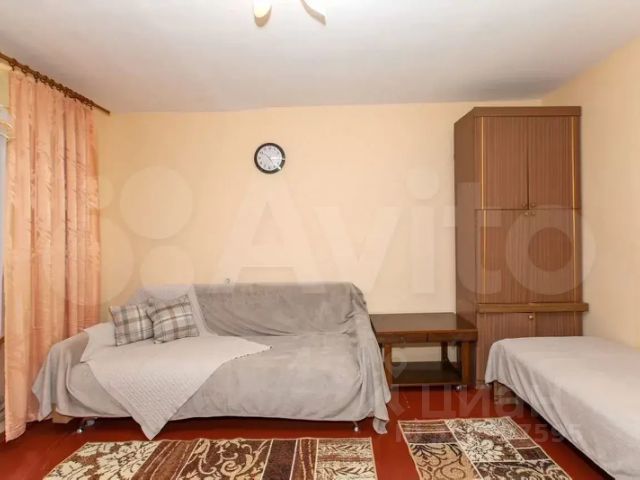 В большой комнате выполнено зонирование ажурной перегородкой из ольхи — спальная зона с полноразмерной кроватью и гостиная зона с диваном, телевизор TCL (4K). Вторая комната — просторная детская в спокойных синих тонах (легко перекрасить в любой цвет) с нишей гардеробом и выходом на застекленную лоджию с окнами в пол с видом на улицу Юбилейная. Просторный коридор.