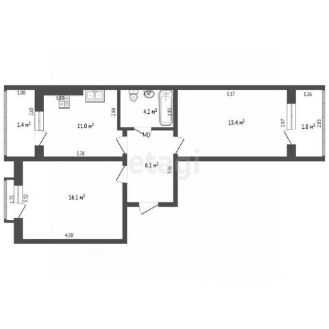 • ✅ Объект наибольшей площади: 65,1 м²