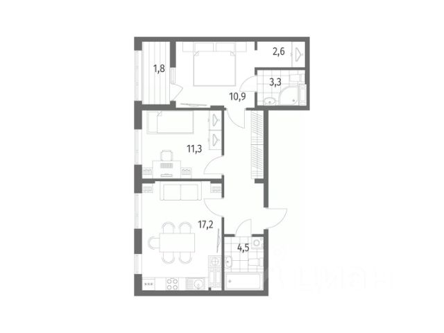 Продается квартира площадью 58.1 м² на 3 этаже 8 секции в Дом на Красной от компании ГК "ТРЕСТ". Площадь кухни 16.2 м². Жилой комплекс комфорт-класса "Дом на Красной" расположен в Центральном районе Калининграда на пересечении улиц Красная и Псковская. Жилой комплекс включает в себя два дома высотой 8 этажей. Срок сдачи намечен на 4 квартал 2026 года. Жилой комплекс "Дом на Красной" имеет среднюю комфортную этажность. Благодаря геометрическим формам, заложенным в архитектурный облик зданий, их конфигурация образует почти закрытую дворовую территорию. Фасад домов выполнен из комбинированных материалов (декоративная штукатурка и плитка под кирпич) в динамичном стиле с выступающими и утопленными частями и панорамными окнами. Архитектуру жилого комплекса подчеркивает декоративная подсветка фасада. В каждом подъезде созданы помещения для хранения колясок, велосипедов и спортинвентаря, которыми могут пользоваться все жильцы. Планировочные решения предусматривают квартиры с просторными кухнями-гостиными, мастер-спальнями и гардеробными. В квартирах, которые передаются покупателям без отделки ("Серый ключ"), предусмотрены открытые террасы с видом на Школьное озеро или красивый внутренний двор, панорамные окна, лоджии с холодным остеклением, потолки высотой 2,72 м. Для удобства автомобилистов созданы подземные паркинги: на 136 машиномест и кладовые помещения. В паркинг можно будет спуститься на лифте комфортно людям, безопасно автомобилям!