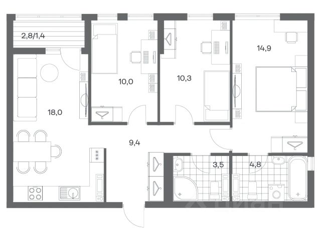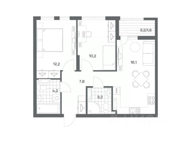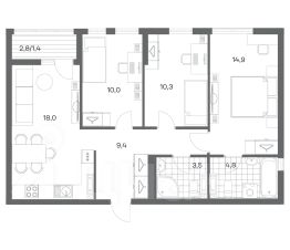 Продается квартира площадью 37 м² на 3 этаже 5 секции в Гагарина 30 от компании ГК "ТРЕСТ". Площадь кухни 15.8 м². Жилой комплекс комфорт-класса "Гагарина 30" расположен в Ленинградском районе Калининграда на улице Юрия Гагарина. Жилой комплекс включает в себя три корпуса высотой 9-18 этажей. Срок сдачи намечен на 1 квартал 2028 года. Жилой комплекс расположен в географическом центре города Калининград. Он знаменит Музеем янтаря, Королевскими воротами, Верхним и Нижним прудами, районами Альтштадт и Лебенихт. Из жилого квартала за 10 минут можно добраться до парков Тихий и Кальтхёфер. В жилом комплексе 457 квартир, из них 55% двух- и трёхкомнатные. Доступны варианты с просторными кухнями-гостиными, мастер-спальнями и кладовыми. На первых этажах расположены квартиры с приватными открытыми террасами. На верхних этажах лоджии с холодным остеклением, панорамными и увеличенными окнами. Высота потолков первого и последнего этажей - 3 м (кроме первого корпуса), остальных 2,72 м. Интерьеры МОП-ов выполнены в минималистичном стиле с контрастными, дополняющими друг друга материалами. Благодаря использованию светлых оттенков, природных текстур и декоративного освещения, пространство имеет большое количество света. В лифт-холле предусмотрена зона ожидания с мягкой мебелью. Почтовые ящики вынесены в тамбур, а рядом со стойкой домофона предусмотрена консоль для сумок. Дизайн-проект разработан студией Right design. Для удобства автомобилистов созданы подземные паркинги: на 125 машиномест и кладовые помещения. В паркинг можно будет спуститься на лифте комфортно людям, безопасно автомобилям!