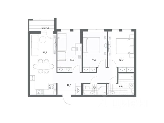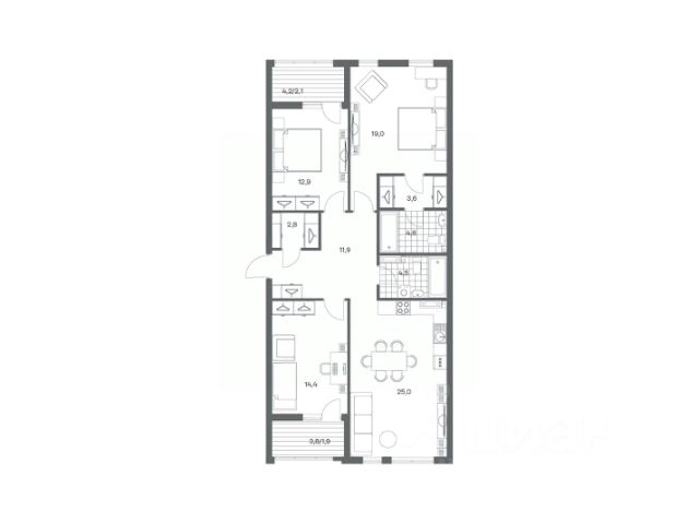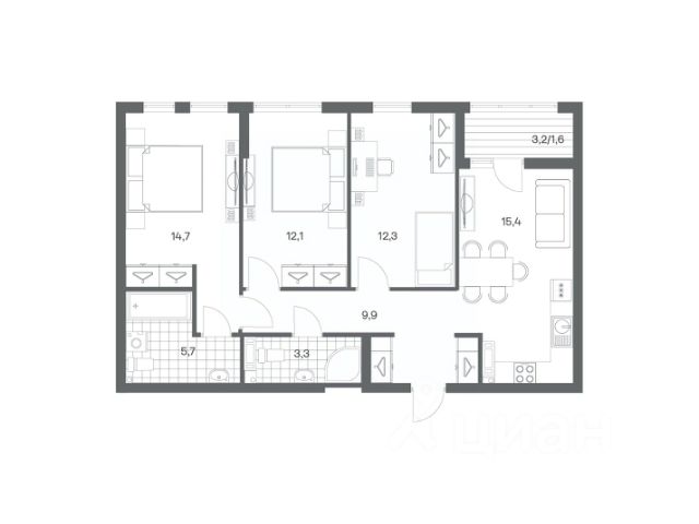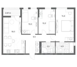 Продается квартира площадью 72.3 м² на 8 этаже 5 секции в Гагарина 30 от компании ГК "ТРЕСТ". Площадь кухни 18 м². Жилой комплекс комфорт-класса "Гагарина 30" расположен в Ленинградском районе Калининграда на улице Юрия Гагарина. Жилой комплекс включает в себя три корпуса высотой 9-18 этажей. Срок сдачи намечен на 1 квартал 2028 года. Жилой комплекс расположен в географическом центре города Калининград. Он знаменит Музеем янтаря, Королевскими воротами, Верхним и Нижним прудами, районами Альтштадт и Лебенихт. Из жилого квартала за 10 минут можно добраться до парков Тихий и Кальтхёфер. В жилом комплексе 457 квартир, из них 55% двух- и трёхкомнатные. Доступны варианты с просторными кухнями-гостиными, мастер-спальнями и кладовыми. На первых этажах расположены квартиры с приватными открытыми террасами. На верхних этажах лоджии с холодным остеклением, панорамными и увеличенными окнами. Высота потолков первого и последнего этажей - 3 м (кроме первого корпуса), остальных 2,72 м. Интерьеры МОП-ов выполнены в минималистичном стиле с контрастными, дополняющими друг друга материалами. Благодаря использованию светлых оттенков, природных текстур и декоративного освещения, пространство имеет большое количество света. В лифт-холле предусмотрена зона ожидания с мягкой мебелью. Почтовые ящики вынесены в тамбур, а рядом со стойкой домофона предусмотрена консоль для сумок. Дизайн-проект разработан студией Right design. Для удобства автомобилистов созданы подземные паркинги: на 125 машиномест и кладовые помещения. В паркинг можно будет спуститься на лифте комфортно людям, безопасно автомобилям!