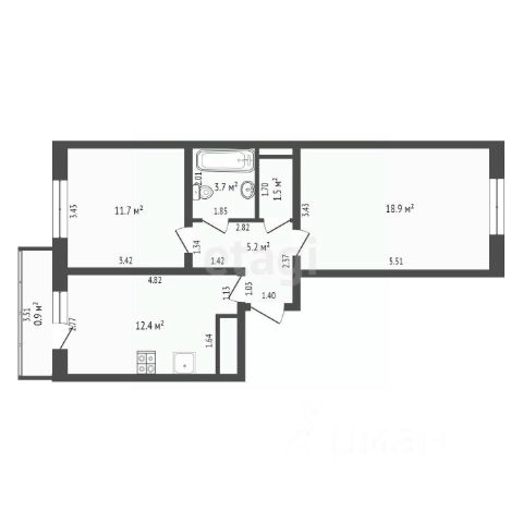 - Удобная, рациональная планировка: изолированная жилая комната площадью 13,8 м², просторная кухня 8,5 м², совмещенный санузел 4,1 м², отдельная кладовая 1,6 м², отапливаемая лоджия 2,2 м².
