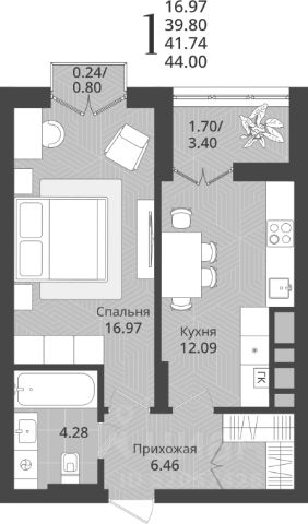 Продаётся 1-комнатная квартира в строящемся доме (1 этап), срок сдачи: I-кв. 2029, общей площадью 41.74 кв.м., на 9 этаже. Новый жилой комплекс "Империя" от застройщика "Рекстрой" расположен по адресу: г. Калининград, ул. Осенняя, 34.