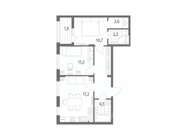 • Комнаты: изолированные, на разные стороны 19.6 м2 ( с окном в пол во двор ) и 12.8 м2 (с окном на прогулочную зону)