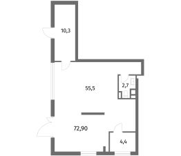Помещение 1 расположено по адресу: Калининградская область, Гурьевск, Лазурная улица, 22к2. Площадь помещения составляет 72.9 кв.м. Высота потолков составляет 3 м. Продажа напрямую от застройщика.