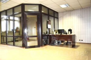 3 помещения разделены стеклянными перегородками на две части.