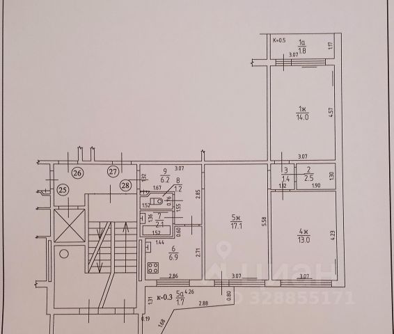 Комнаты изолированные 19,6 кв.м, 17 кв.м и 16,6 кв.м, кухня 9,5 кв.м, очень светлые в каждой комнате по два окна, из Гостиной выход на балкон, утопающий в зелени, просторная ванная комната 7,7 кв.м с окном.