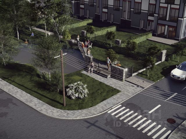 Таунхаус расположен на земельном участке 2.89 сотки в собственности. Территория комплекса полностью огорожена, выполнено мощение дорожек и тротуаров, установлено уличное освещение и проведено ландшафтное озеленение.