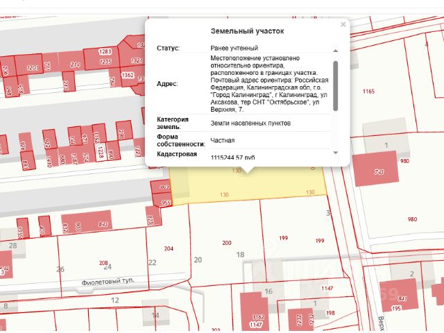 Назначение участка ИЖС (индивидуальное жилищное строительство под существующий жилой дом), в собственности, в Центральном районе города Калининграда, в районе, малоэтажной застройки).
