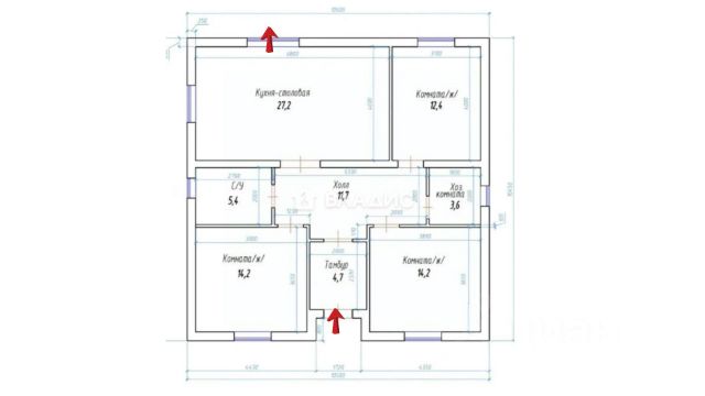 I-й этаж: холл более 10 кв.м, техпомещение, санузел с внешним окошком, две раздельные спальные комнаты -(14,1+14,2) кв.м, просторная и светлая гостиная- кухня-столовая -28 кв.м с панорамным остеклением и выходом на большую, крытую террасу площадью 22 кв.м. Высокие потолки (более 4 м) создают ощущение простора, улучшает циркуляцию воздуха, дает возможность для смелых архитектурных решений;