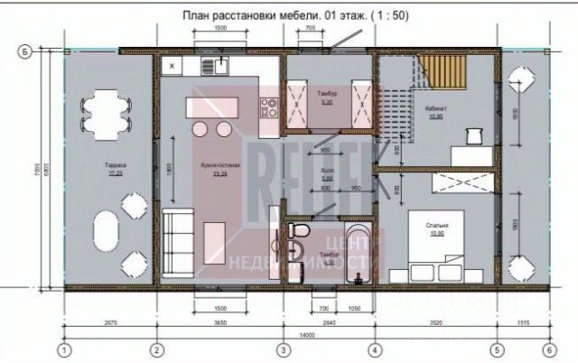 -1 этаж: просторная кухня-гостиная 35 кв.м. с выходом на террасу,