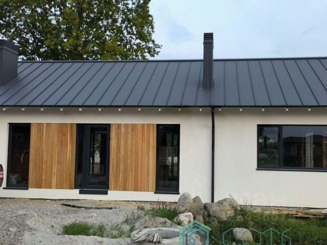 Дом построен из качественных материалов, окна графитовые в пол. Крыша ( не плиты) залита под уклон, утеплена и покрыта 2 слоями гидроизоляции, с соблюдением всех технологий. Фундамент- плита 25 см, с двумя рядами армирования, 12 арматура с шагом 20см, стены из керамического блока, утеплены фасадным пенополистеролом 16ой плотности, покрыты силиконовой штукатуркой, входная группа украшена планкеном из лиственницы на скрытых монтажный креплениях. Фальцевая кровля из топового материала Grand Line Pro Line с покрытием Rooftop Matte который не ведёт волнами при нагреве кровли на солнце.