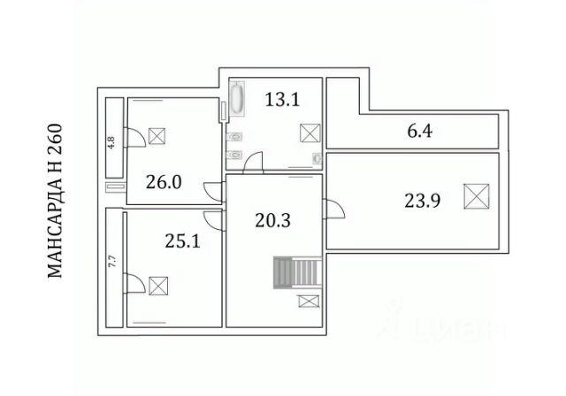3 этаж: свободная планировка с возможностью организации пространства под ваши требования.