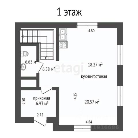 - 3 этаж: кухня 19,8 кв.м, коридор, две просторные спальни 20,5 кв.м. и 15,5 кв.м, два совмещенных санузла 6,8 и 6,3 кв.м., балкон.