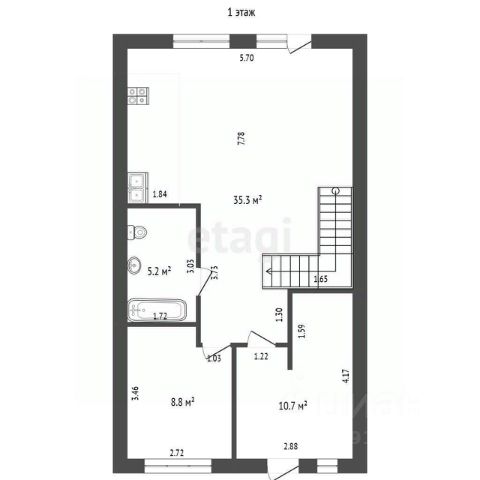 На первом этаже расположена просторная кухня-гостиная 25,6 кв.м., зал для занятий спортом 26,0 кв.м., санузел, просторный холл.