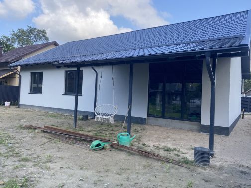 Продам одноэтажный трехкомнатный дом 107 м2 на участке 5 соток! Продуманная и очень удобная планировка: - три изолированные комнаты; - просторная кухня-гостиная с панорамными окнами; - два санузла; - постирочная; - котельная. В стоимость входит: земельный участок; дом из газобетона (окна, фасад) газ; электричество; вода; (скважина) канализация; (септик) Адрес участка: г. Кал-д ул. Лесная 3, СНТ "Золотая осень"