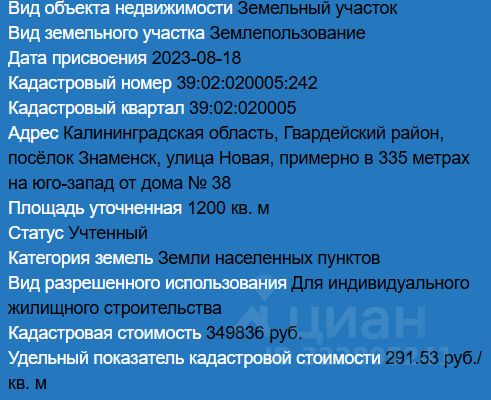 Меcтоpaсположениe: Калининградская область, Гвардейский район, п.Знаменск, ул.Шоссейная. Расстояние до центра поселка - ост. Площадь - 950м Категория земель участков: Земли населенных пунктов. Вид разрешенного использования (ВРИ) - индивидуальное жилищное строительство. Возможно строительство жилого дома до 3х этажей. Коммуникации: Электричество: есть возможность подключения. Ближайший столб находится на расстояние 42м. Дорога до участка: круглогодичный подъезд - брусчатка Инфраструктура: в п.Знаменск в 5 мин минутах на авто есть продуктовые магазины, школа, детский сад, Администрация округа, аптека, автомойка, шиномонтаж и т.д. Напротив - через реку Лава - Тюнинские бани, кафе Ферма. Особенность участка: участок правильной формы, ровный. В Гвардейском районе могут купить земельный участок иностранцы. Юридическая чистота: Все документы готовы для сделки. Единственный собственник. Проведено межевание. Получен Градостроительный план на земельный участок (ГПЗУ) 30 мая 2025г. Кадастровый номер 39:02:020006:99 Купить участок под индивидуальное жилое строительство с коммуникациями в муниципальном округе Гвардейский Калининградской области.