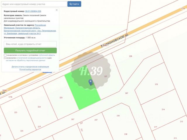 Ориентиры: выезд из г. Калининграда по ул. Дзержинского в направлении г. Багратионовска, п. Дружный, п. Новое Лесное, п. Малое Лесное, п. Лесное, п. Нивенское.