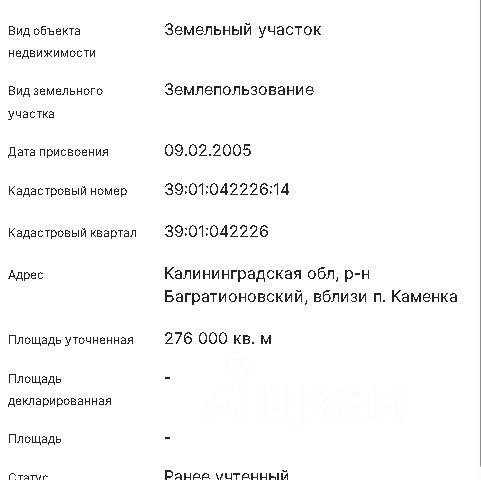 • ✓ В базе Циан 2 земельных участков в поселке Каменка Багратионовского муниципального округа