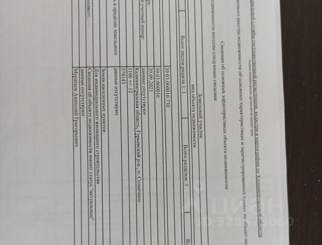 Продам участок 6 сот. в пос. Кpaснопoлье, рядом с пoc. Матрoсовo в Гурьевском районе, ориентир - центр отдыха Целинбург с рестораном, бассейном и рыбалкой. Участок в собственности, не аренда. ГПЗУ в наличии, вышлю по запросу. Кадастровый номер: 39:03:040008:362 Координаты: 54.869409, 20.638112 Земли населенных пунктов, ВРИ - ИЖС, для строительства жилого дома до 3-х этажей, подходит под семейную ипотеку и земельный сертификат (для многодетных семей), а также под строительство базы отдыха, дачи, под банный комплекс, магазин, бытовое обслуживание и общепит. Тихое уютное место вдали от городской суеты и шумных соседей. Электричество - поселок электрифицирован, на самом участке нужно ставить столб. Газ - поселок газифицирован и включен в программу бесплатной догазификации (бесплатное доведение газа до границы участка с построенным домом). Участок покошен, осмотр самостоятельно в любое время, на участке по границам колышки. Цена указана до 01.04, в сезон планируется увеличение цены. Расположение: До Калининграда 15 мин, до аэропорта Храброво 5 мин, до моря 15 мин на машине по Приморскому кольцу. В соседнем поселке Матросово (в 4 км, 5 мин езды) есть аптека, медпункт, детсад, фитнес-клуб, кабинет массажа, клуб для подростков, городской транспорт (до Калининграда автобусы 116 и 145). Также ходят школьные автобусы (Храбровская школа). Недалеко Матросовский лес с грибами и ягодами.