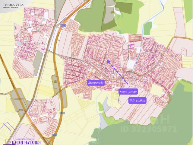АДРЕС: • Калининградская область • Гурьевский район • поселок Матросово • улица Васнецова УЧАСТОК: - площадь: 9.5 соток - разрешенное использование: для строительства индивидуального жилиго дома - категория земель: земли населенных пунктов - с правом ведения индивидуального жилищного строительства и регистрации - эл-во: столб перед участком - газ: соседние улицы газифицированы - не обрабатывается - ровный, сухой, высокий ПОСЕЛОК: - до 1946 года Уггенен (нем. Uggehnen) - газифицирован - эл-во: столб вдоль участка - магазины, ОЗОН, Wildberries - места отдыха - школьный автобус - садик - амбулатория, здравпункт ТРАНСПОРТНОЕ СООБЩЕНИЕ: - 15 км (10 минут на автомобиле) до Калининграда - 5 км до аэрпорта Храброво - 16 км до побережья - остановка Матросово 145 автобус Наша область одна из самых комфортных мест для проживания в Российской Федерации. Мягкий морской климат, красивые и ухоженные города и поселки, один из самых низких уровней преступности в России, прекрасные условия для развития и воспитания детей, акцент на здоровом образе жизни. В Калининграде есть все для комфортной и здоровой жизни! Профессиональная продажа Вашей недвижимости! Полный комплекс ипотечных услуг, в том числе и ипотечное страхование Сопровождение сделки под ключ Выездная регистрация сделки (срок регистрации перехода права 1 рабочий день) Звоните, отвечу на все вопросы и организую просмотр участка! Юрист и риэлтор, Наталья Баган!
