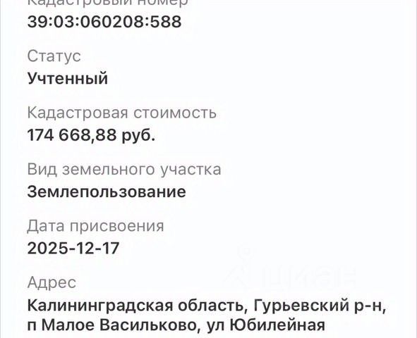 ИЖС! Кадастровый номер: 39:03:070901:578. Земельный участок 10 соток! на фото выделены свободные. Сухой, ровный, правильной формы! Электричество на участке, посёлок газифицирован, дороги хорошие. Поселок Константиновка всего 15 минут от Калининграда, 6 минут от Гурьевска , до моря 30 минут, до аэропорта 25 минут! Посёлок с очень развитой инфраструктурой, своя школа, детский сад Родник, культурно-досуговый центр с кружками и секциями, магазины, аптека, Озон, ВБ, кафе, все в шаговой доступности. В посёлке есть агротуристический комплекс Подворье на Хуторской, со своим мини зоопарком, где больше 30 видов животных и птиц, с зоной отдыха, аква зоной, озером! Ориентир улиц: Гвардейская, Дальневосточная, Промышленная-Зеленая-Победы Документы готовы. ГПЗУ. Быстрый выход на сделку!