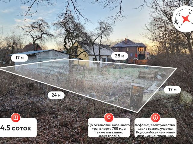 Код объекта: 1887408. Продаётся земельный участок в СНТ "Мечта", Бригадный переулок, Калининград, Центральный район, конец улицы Катина. Участок ровный, сухой, огорожен забором из профлиста. На участке отсутствуют строения. Участок имеет статус садоводства, площадь — 4,3 сотки. К участку подведено электричество 15 кВт и газ, водоснабжение скважина, канализация септик. Месторасположение участка очень удобное, тихое и уютное место в зоне частной жилой застройки. Спокойный район, хорошие соседи. Одновременно близость городской инфраструктуры. Хороший асфальтированный подъезд к участку с улицы Катина, 1-й Большой Окружной улицы и улицы Якорной. До остановок общественного транспорта, магазинов, аптеки, пунктов выдачи заказов 500 м. До центра города 10-15 минут на машине, 15-20 минут на общественном транспорте. Удобный выезд на морское побережье. Это идеальный выбор для тех, кто хочет построить свой дом недалеко от города. Всего в нескольких минутах езды от участка находятся важные объекты инфраструктуры и транспортная развязка, что обеспечивает удобный доступ к центру Калининграда. Не упустите шанс стать владельцем этого прекрасного участка. Звоните нам прямо сейчас, чтобы узнать больше и договориться о просмотре. Мы гарантируем безопасную сделку и юридическую поддержку нашим Клиентам. Продам земельный участок в СНТ Мечта в городе Калининград.