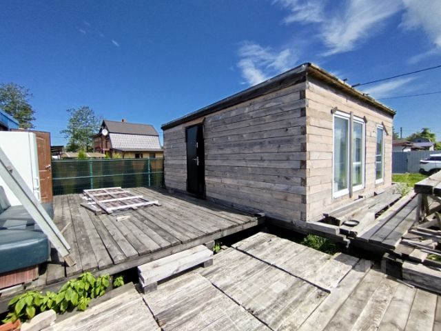 На участке построен курортный дом в 1978 году по проекту "финский дом", общей площадью 63,4 кв.м. Дом ухоженный и аккуратный. Каждая из трех комнат и кухня имеют отдельные входы. Большая терраса 18 кв. метров. Вход в санузел и душевую с террасы. Дом продается вместе с мебелью и сопутствующим дачным инвентарем.