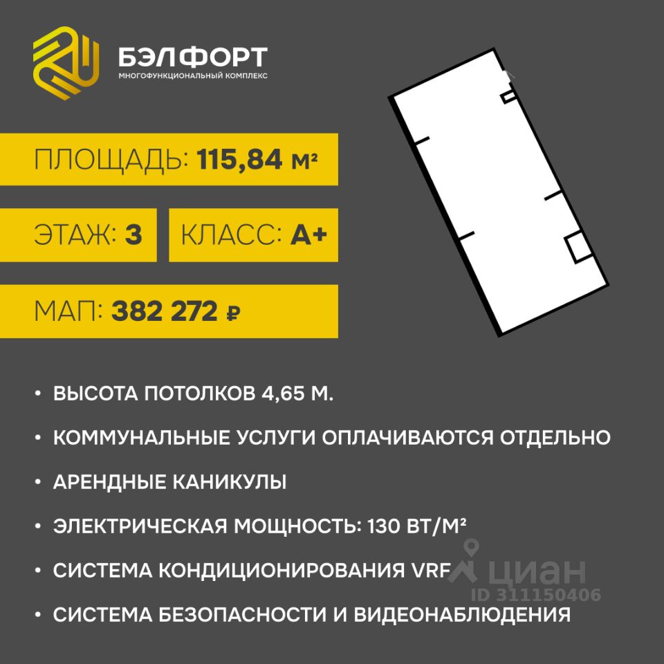 Эксклюзивное помещение в бизнес-парке нового поколения БЭЛФОРТ.