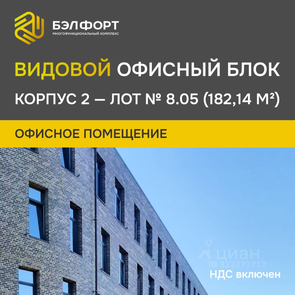 Современное офисное помещение 182,14 м² на 8-м этаже нового бизнес-парка БЭЛФОРТ с высокими видовыми характеристиками. Это уникальная возможность спланировать офисную среду с нуля под задачи вашего бизнеса. Аренда напрямую от девелопера — выгодные условия и арендные каникулы Панорамные виды на город и парк с 8-го этажа Офис под ваши нужды — индивидуальная планировка Инфраструктура всё в одном: Кафе, рестораны, магазины Просторное лобби 360 м² Подземный и наземный паркинг Сдача комплекса в 2026 — станьте одним из первых резидентов Технические характеристики: Высота потолков: 3,0 м Большие окна — много естественного света Электрическая мощность: 130 Вт/м² Современная система кондиционирования (VRF) Высокоскоростные лифты Круглосуточная система безопасности и видеонаблюдения О комплексе: БЭЛФОРТ — это не просто офисный центр, а премиальный бизнес-парк класса А в центре Калининграда. К 2026 году здесь создадут ключевую точку для деловой и спортивной жизни города с офисами, гостиницами, ресторанами и общественными пространствами. Расположение: Центральный район, 7 минут до ЖД вокзала и центра города. Инфраструктура для комфорта: Концепция Healthy building для продуктивной работы, благоустроенная территория, дизайнерские зоны общего пользования. Ваши соседи: Ведущие компании из сферы финансов, IT, юриспруденции. Для кого этот офис: Идеален для компаний, которые ценят комфорт сотрудников, репрезентабельность и хотят стать частью успешного бизнес-сообщества с самого старта проекта. Свяжитесь с нами сегодня, чтобы забронировать лот, обсудить индивидуальную планировку и условия аренды. Возможность повлиять на облик вашего будущего офиса ограничена!