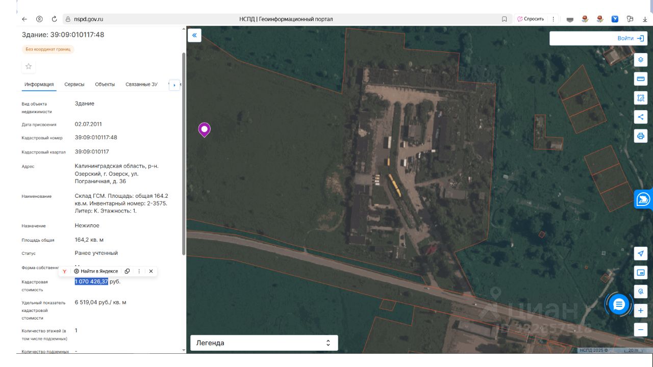 нежилое здание склад ГСМ, общей площадью 164,2 кв. м., с кадастровым номером 39:09:010117:48, по адресу: Калининградская область, г. Озерск, ул. Пограничная, д. 36, находящееся в оперативном управлении МБУ "Озерск-Школьник", срок аренды 5 лет