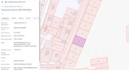 Земельный участок с кадастровым номером 39:01:030102:62 площадь 1200 по адресу Калининградская обл, р-н Багратионовский, п Ново-Московское, ул Новая, участок 3