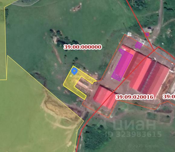 Земельный участок с кадастровым номером 39:09:020015:250 площадь 2020 по адресу Российская Федерация, Калининградская область, м.о. Озерский, п Ново-Гурьевское