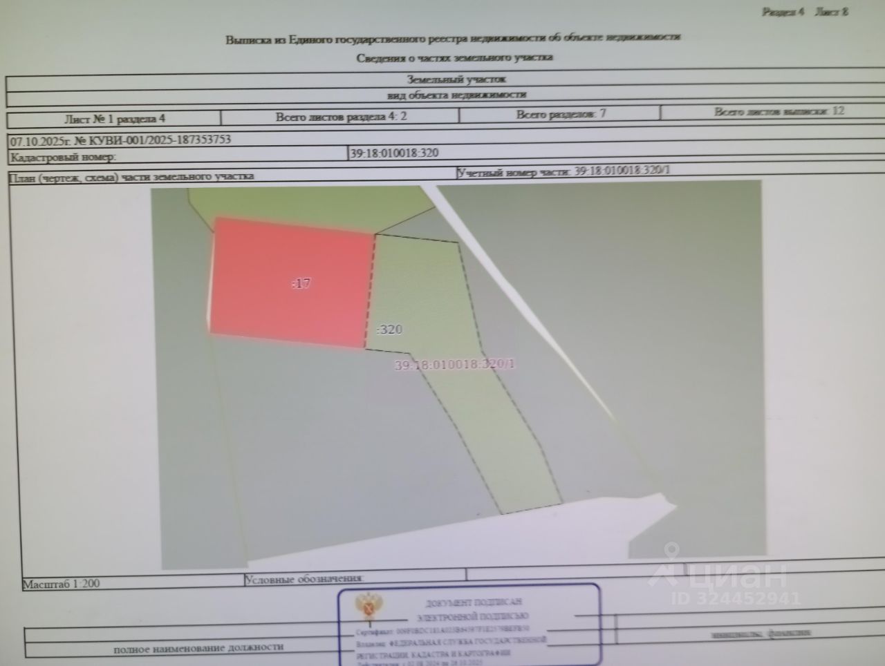 право заключения договора аренды земельного участка с КН 39:18:010018:320